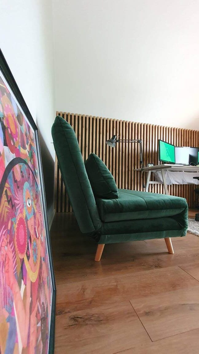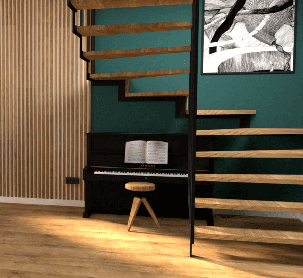 Wprowadzając zieleń do klatki schodowej, chcieliśmy stworzyć przestrzeń, która od samego wejścia napawa optymizmem i spokojem. Zielony symbolizuje harmonię i pomaga obniżyć poziom stresu, co czyni tę przestrzeń idealną do relaksu i wyciszenia.