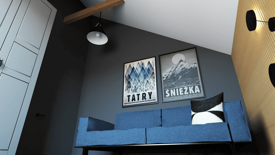 W pokoju dziecka zamieniliśmy go w sypialnię astronauty, inspirującą do marzeń i podróży w kosmos. Gwiazdy na ścianach tworzą przestrzeń zarówno kreatywną, jak i funkcjonalną.