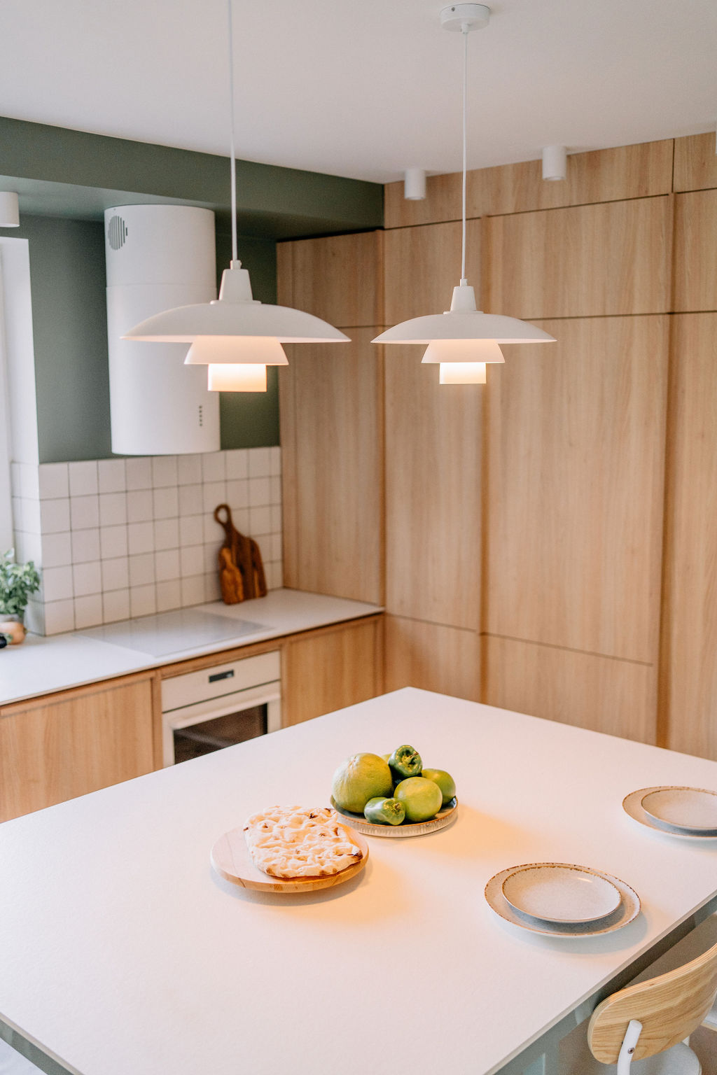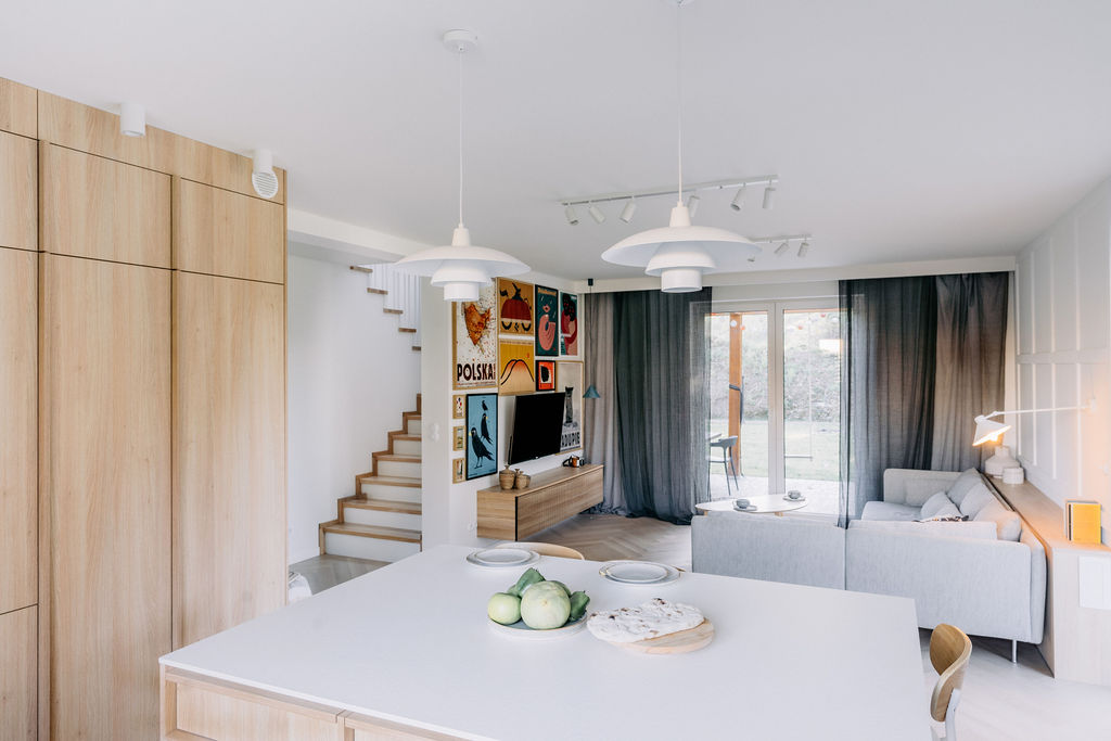 Przepiękny dom pod Wieliczką, zaprojektowany dla rodziny 2+1. To miejsce pełne kolorów i stylu retro, które po prostu uwielbiam! Nad wyspą znalazły się lampy zaprojektowane przez Poul Henningsena, który w latach 1925-1926 stworzył system trzech kloszy we współpracy z Louisem Poulsenem. Jego celem było stworzenie nieoślepiającego światła, które mogłoby być skierowane tam, gdzie było potrzebne, i tworzyło miękkie cienie. Całość naprawdę tętni życiem!