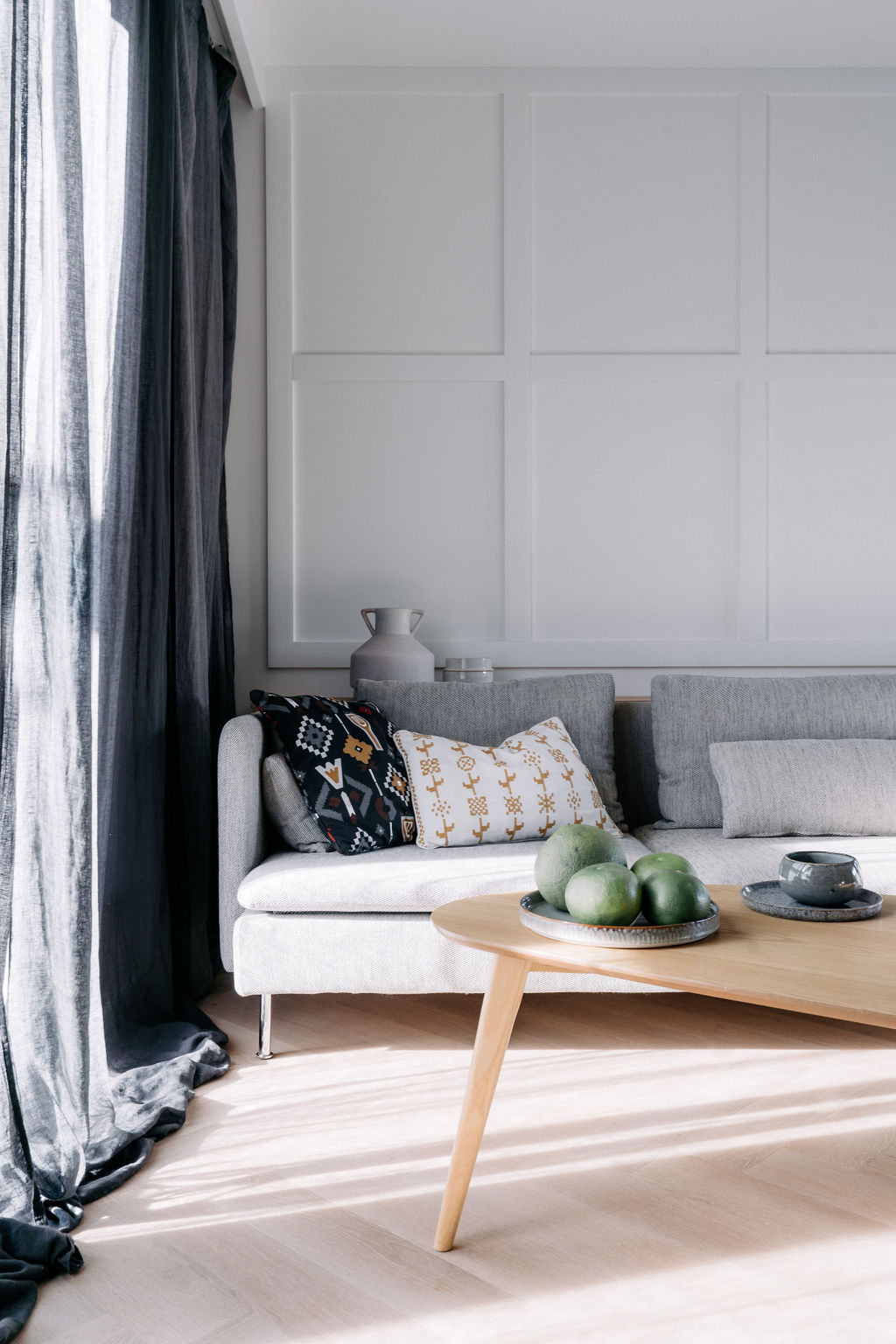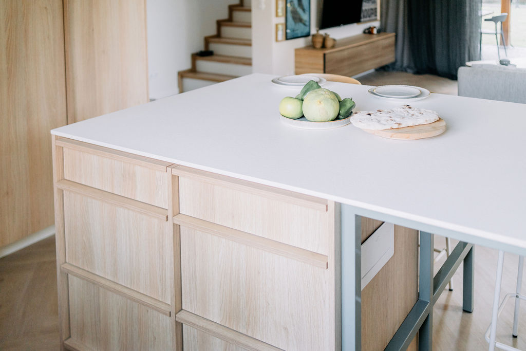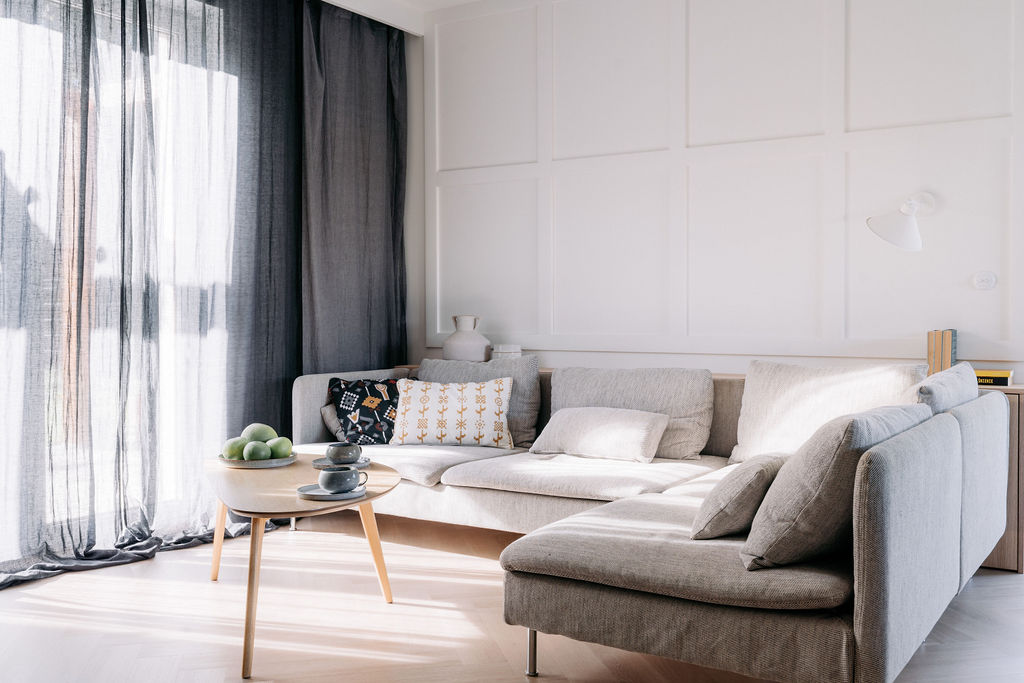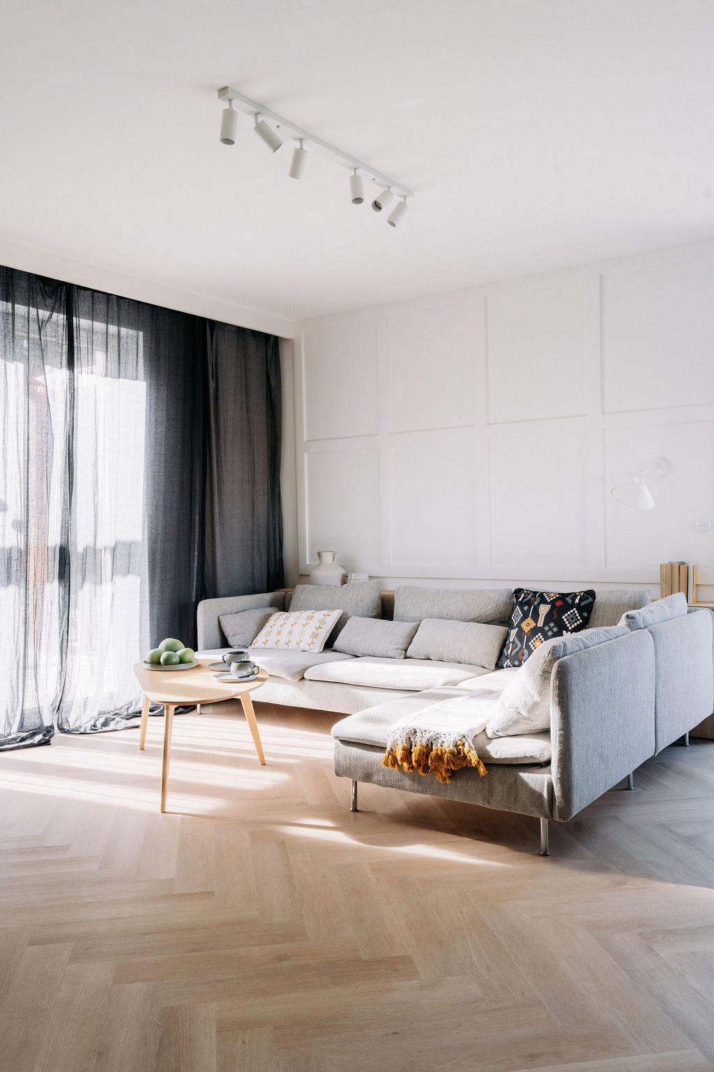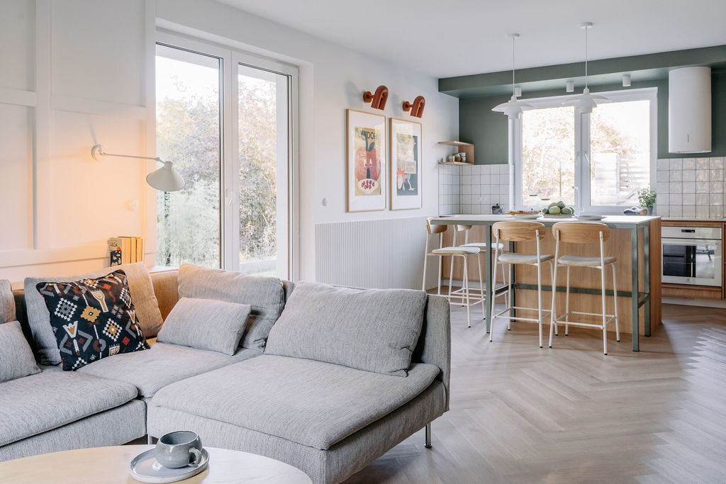 Kuchnia to serce tego domu, z dużą wyspą i hokerami, które zachęcają do wspólnego gotowania. Drewniana kuchnia z urokliwymi uchwytami idealnie komponuje się z resztą wnętrza, tworząc spójną i stylową przestrzeń. A strefa relaksu? Zestaw Sofa Soderhamn z IKEA to prawdziwy hit! Można ściągnąć pokrowce, co jest niezwykle praktyczne, zwłaszcza z małym dzieckiem w domu. Komfort i kolorystyka sprawiają, że chętnie spędzamy tu czas!